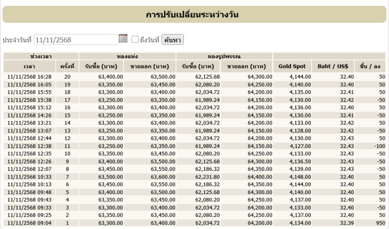 ราคาทอง ปิดตลาดวันนี้ 11 พ.ย.68