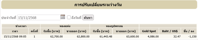 ราคาทองคำ วันที่ 15 พฤศจิกายน 2568