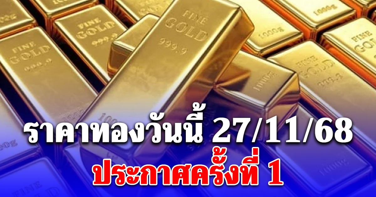 ราคาทองวันนี้ 27 พฤศจิกายน 2568 โดย สมาคมค้าทองคำ ประกาศราคาทองครั้งที่ 1 (เปิดตลาด) เมื่อเวลา 09.06 น. ปรับตัวลดลง 100 บาท เมื่อเทียบกับราคาซื้อขายครั้งสุดท้ายของเมื่อวาน(พุธ) ที่ระหว่างวันมีการประกาศราคาทองคำทั้งหมด 14 ครั้ง รวมราคาปรับตัวเพิ่มขึ้น 250 บาท