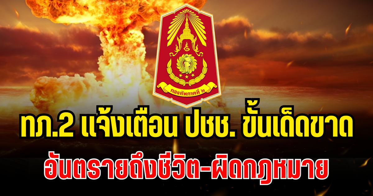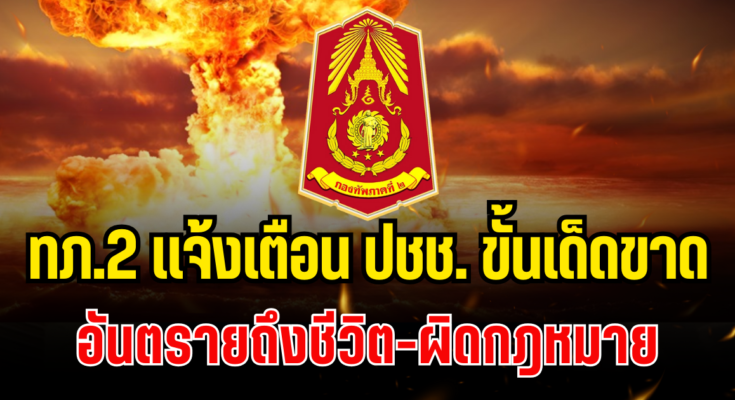 ด่วน! กองทัพภาคที่ 2 ประกาศเเจ้งเตือนประชาชน ขั้นเด็ดขาด อันตรายถึงชีวิต-ผิดกฎหมาย