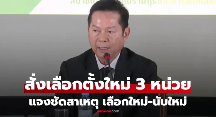 กกต. มีมติสั่งเลือกตั้งใหม่ 3 หน่วย ใน 3 จังหวัด ได้แก่ กทม. น่าน และอุดรธานี กำหนดวันลงคะแนนใหม่ 22 ก.พ. 2569 ขณะเดียวกันยืนยันไม่มีเหตุให้นับคะแนนใหม่ในเขต 1 ชลบุรี หลังตรวจสอบข้อร้องเรียนแล้วไม่พบหลักฐานบ่งชี้ความไม่สุจริตหรือความผิดพลาดในการนับคะแนน