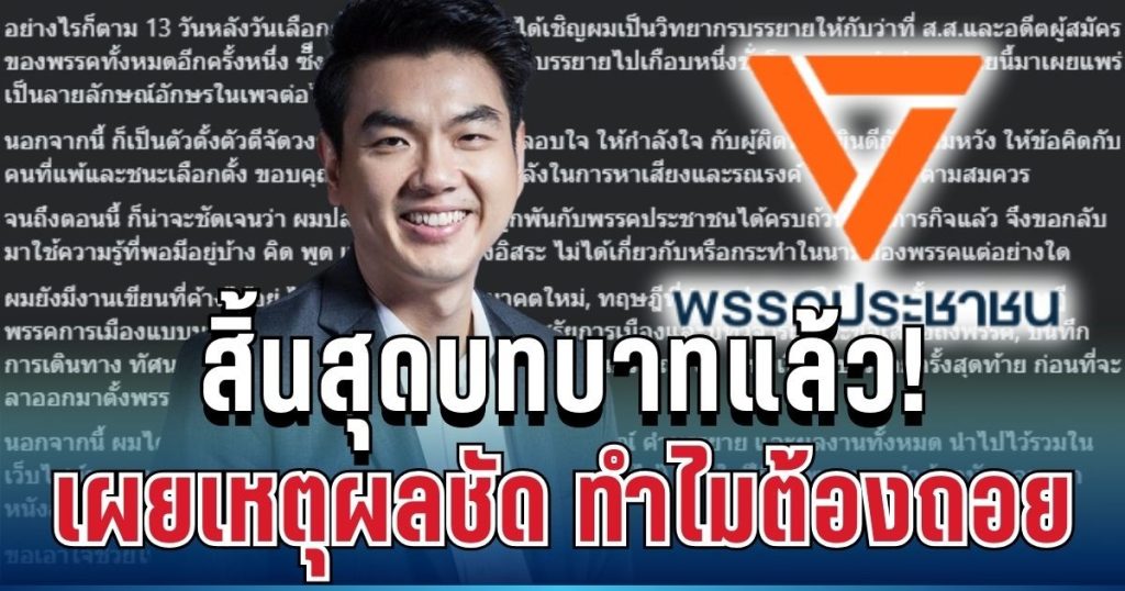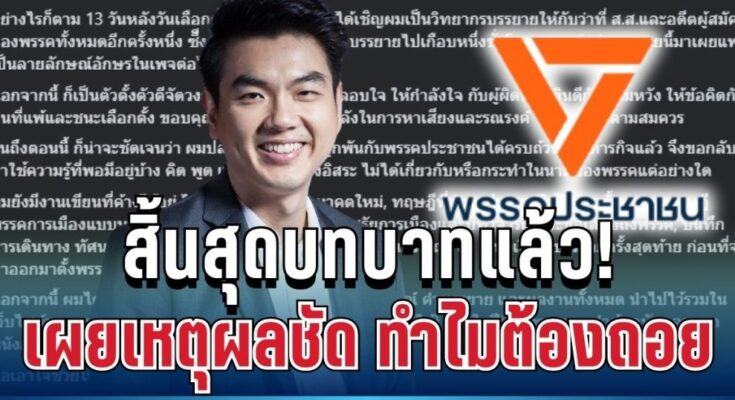 ด่วน! ปิยบุตร ประกาศสิ้นสุดบทบาทแล้ว เผยเหตุผลชัด ทำไมต้องถอย