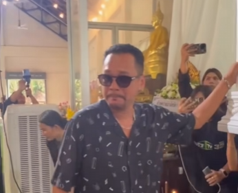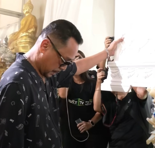 เจ้าตัวมีสีหน้าโศกเศร้า เหมือนร้องไห้ พร้อมน้ำตาที่เอ่อล้น สะท้อนถึงความผูกพันและความอาลัยอย่างสุดซึ้ง ทำให้บรรยากาศภายในงานยิ่งเต็มไปด้วยความโศกเศร้าอย่างยิ่ง