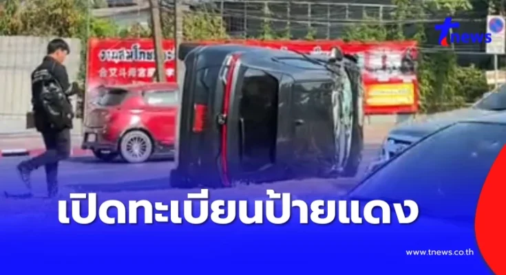เปิดทะเบียน รถป้ายแดงเพิ่งออกมาตอน 9 โมงเช้า ก่อนปีนเกาะกลาง