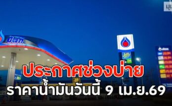 ประกาศช่วงบ่าย ราคาน้ำมันวันนี้ 9 เม.ย.69